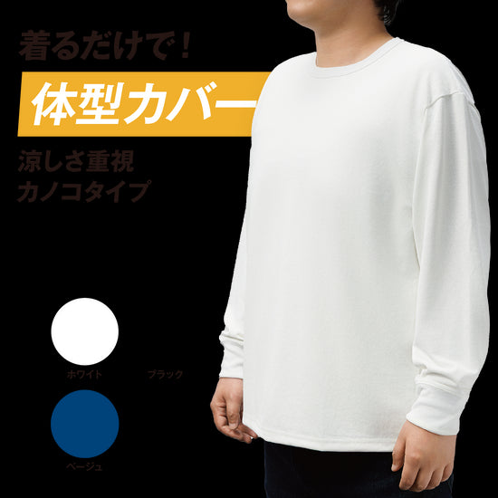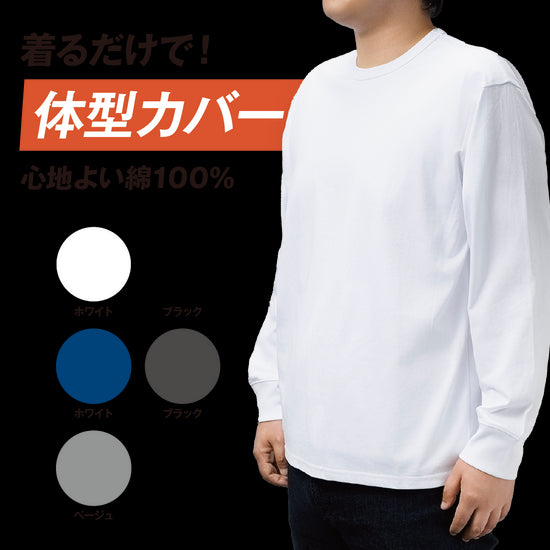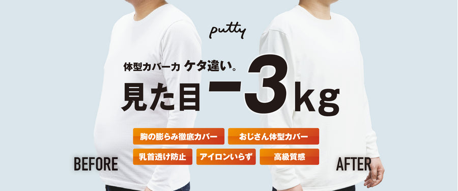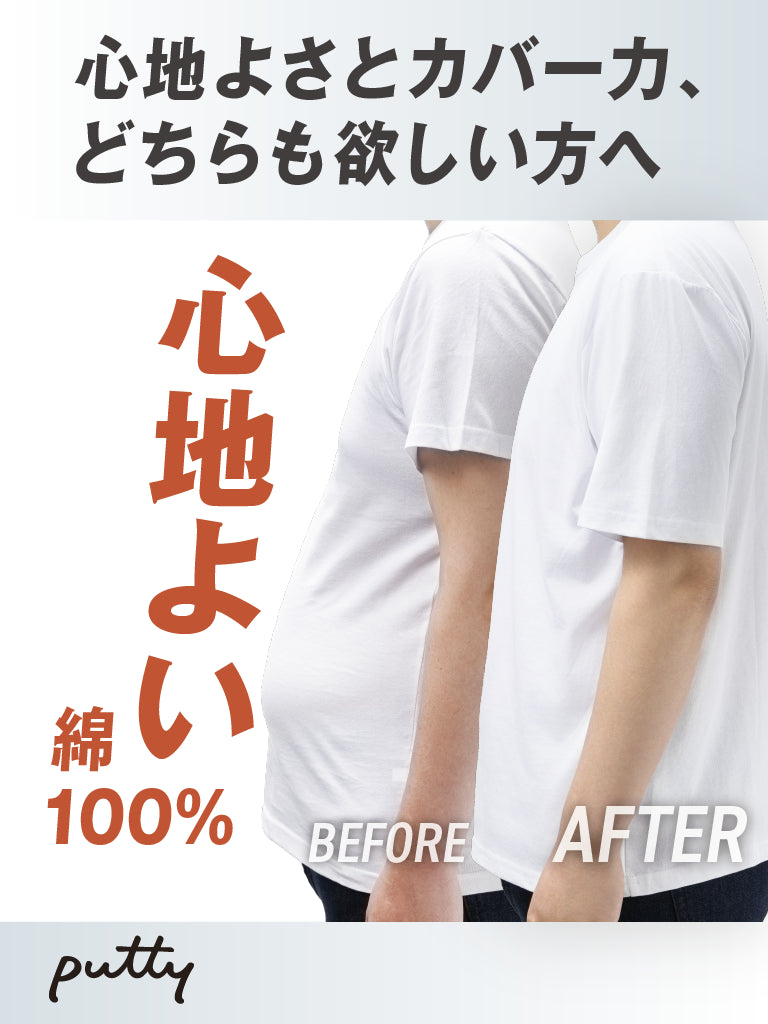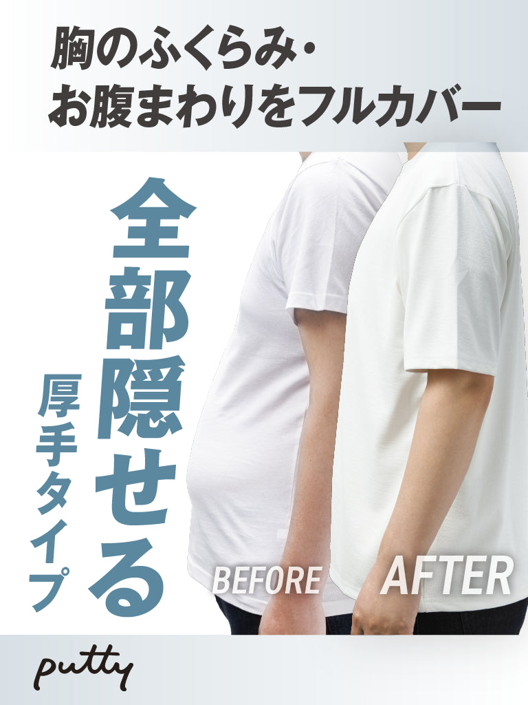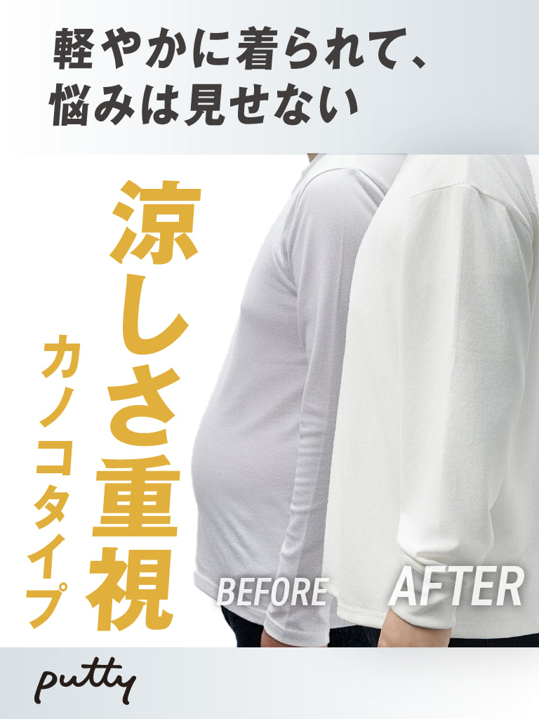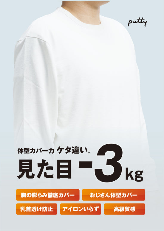 putty 長袖Tシャツ【厚手】 <胸の膨らみを気にせず着られる、厚手仕様の長袖Tシャツ> 厚みのある生地を採用し、胸の膨らみをしっかり隠すことができるシリーズです。putty独自の前面のみ二重構造で、目立ちにくさを最大限に追求しました。中に肌着を着用いただくと、さらに効果がアップします。 素材には、コットンのような肌触りを持つ肉厚なポリエステル生地を採用。型崩れやシワが起こりにくいだけでなく、吸水速乾性にも優れています。また、ノンアイロン仕様のため、お手入れも簡単です。さらに、タグを裾側に配置することで、首元の不快感を軽減し、快適に着用いただけます。 ※写真のモデルは身長175cm、体重80kgで、Lサイズを着用しています。 <SPEC> 品番:PT201 素材:ポリエステル100% 原産国:日本 カラー:ホワイト・ブラック <サイズ> Mサイズ:身丈70cm、肩幅50cm、身幅57cm、裾幅51cm、袖丈56.5cm Lサイズ:身丈72cm、肩幅52cm、身幅60cm、裾幅54cm、袖丈58cm XLサイズ:身丈73cm、肩幅54cm、身幅64cm、裾幅57cm、袖丈59.5cm XXLサイズ:身丈74cm、肩幅56cm、身幅68cm、裾幅60cm、袖丈59.5cm 3XLサイズ:身丈76cm、肩幅58cm、身幅72cm、裾幅63cm、袖丈59.5cm 4XLサイズ:身丈76cm、肩幅60cm、身幅78cm、裾幅68cm、袖丈59.5cm ご注文に関する注意事項※ギフトラッピングは承っておりません。 ※お客様都合の返品・返金はお受けいたしかねます。 ※商品はご注文受付日から約1〜5営業日以内に日本郵便で発送いたします。但し、長期休業時は6営業日以上お日にちをいただく場合がございます。 ※15,000円以上(税込)お買い上げで送料無料となります。