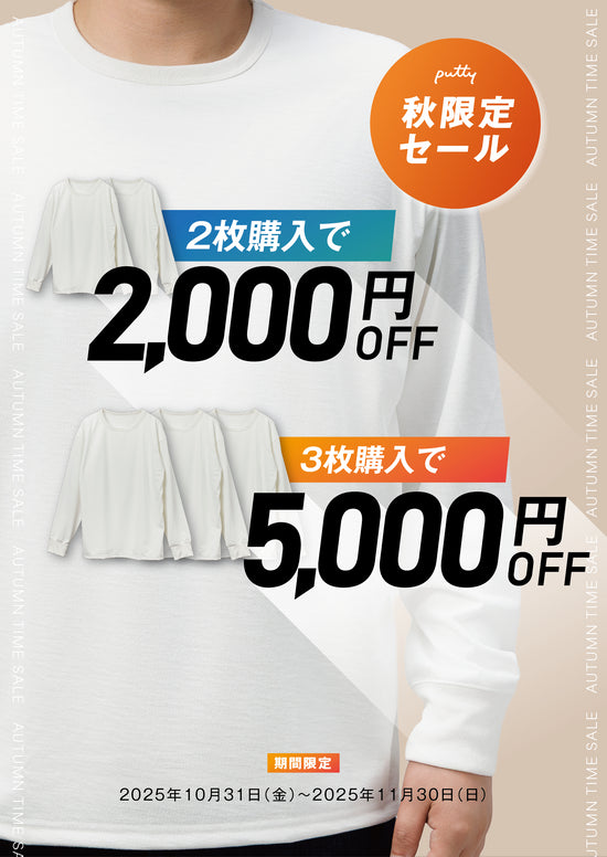putty 長袖Tシャツ【カノコ生地】 ノンアイロン&速乾性を備えた快適な長袖Tシャツ ノ薄手の生地を採用し、軽やかな着心地を実現したシリーズです。putty独自の前面のみ二重構造で、目立ちにくさを最大限に追求しました。さらに、内側の生地には外側とは異なる、通気性と吸汗性に優れた素材を使用。ポリエステル素材ながらコットンのような柔らかさと滑らかな質感を持ち、型崩れやシワが少なく快適に着用できます。シンプルで上品なデザインは、カジュアルからフォーマルまで対応。また、ノンアイロン・速乾性・抗ピリング性を備え、機能性とデザインを兼ね備えた一枚です。 ※写真のモデルは身長175cm、体重80kgで、Lサイズを着用しています。 <素材> 品番:PT203 素材:ポリエステル100% 原産国:日本 カラー:ホワイト・ブラック・ネイビー <サイズ> Mサイズ:身丈70cm、肩幅50cm、身幅57cm、裾幅51cm、袖丈56.5cm Lサイズ:身丈72cm、肩幅52cm、身幅60cm、裾幅54cm、袖丈58cm XLサイズ:身丈73cm、肩幅54cm、身幅64cm、裾幅57cm、袖丈59.5cm XXLサイズ:身丈74cm、肩幅56cm、身幅68cm、裾幅60cm、袖丈59.5cm 3XLサイズ:身丈76cm、肩幅58cm、身幅72cm、裾幅63cm、袖丈59.5cm ご注文に関する注意事項※ギフトラッピングは承っておりません。 ※お客様都合の返品・返金はお受けいたしかねます。 ※商品はご注文受付日から約1〜5営業日以内に日本郵便で発送いたします。但し、長期休業時は6営業日以上お日にちをいただく場合がございます。 ※15,000円以上(税込)お買い上げで送料無料となります。
